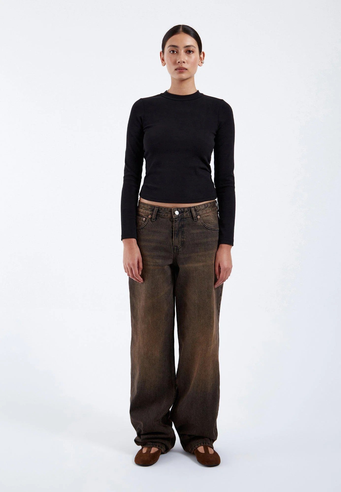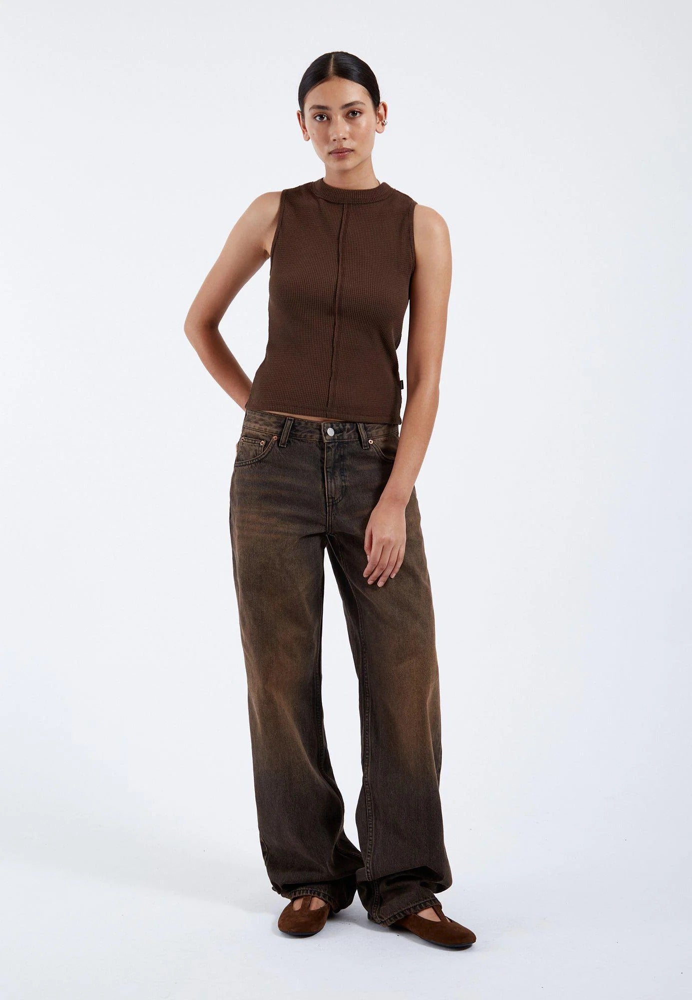 DR. DENIM Hill Women's Jeans Wide Leg Jet Brown Used