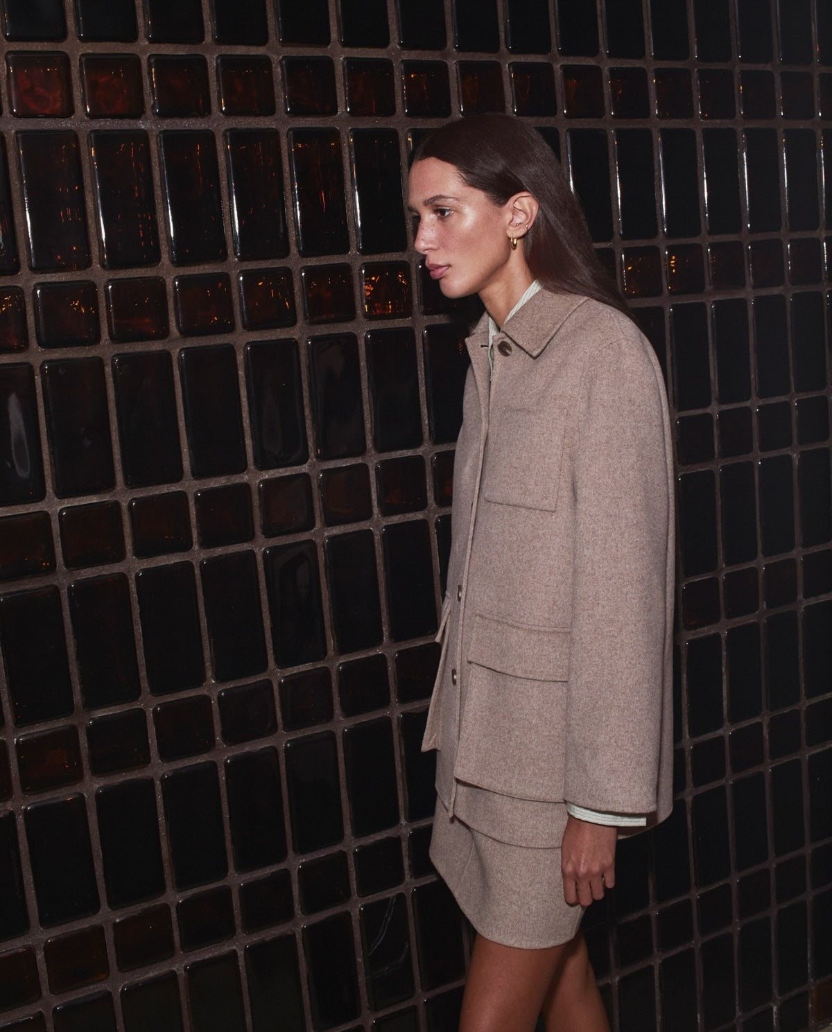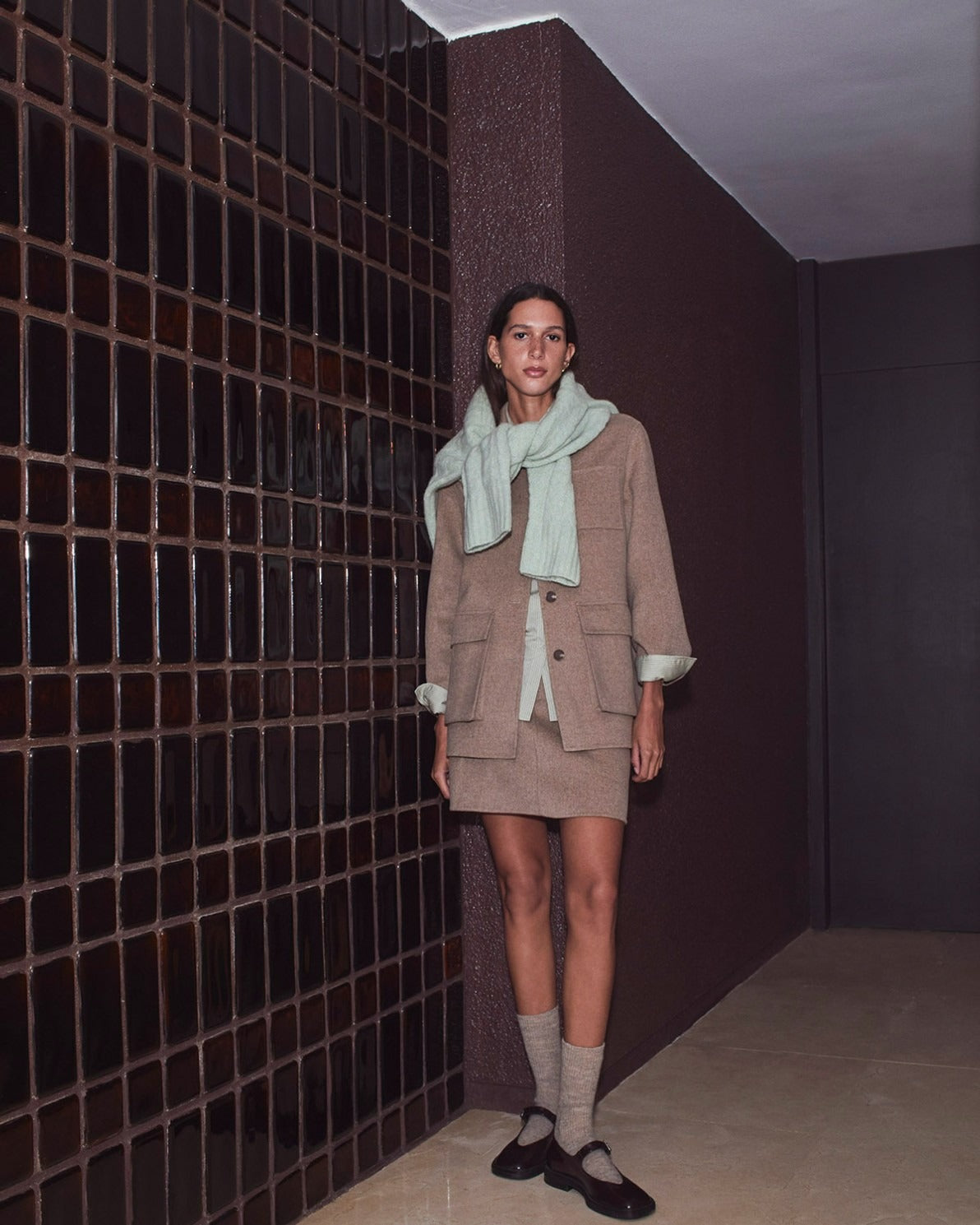 YERSE Brown Wool Blend Short Coat